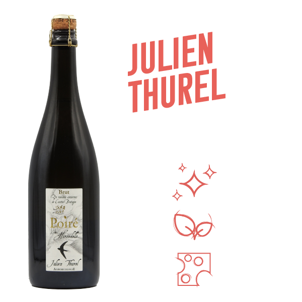 Poiré (pear cider) comes from a granitic soil. The fermentation process is carried out with natural yeasts, and the cider and Poiré are then aged in tanks or barrels. Here, the cider and Poiré are complex and exhibit great freshness, making them excellent for gastronomic purposes. They are true wines of apple and pear.